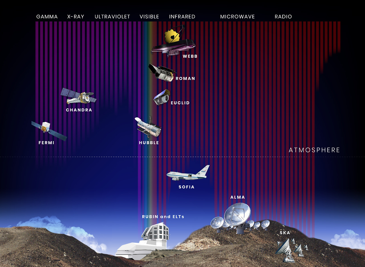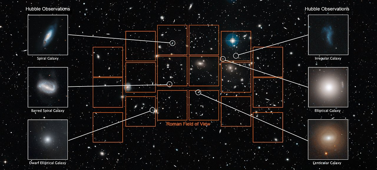ナンシー・グレース・ローマン宇宙望遠鏡: ナンシー・グレース・ローマン望遠鏡は、ハッブルと同じ2.4mの主鏡直径を持ちますが、0.5-2.3マイクロメートル範囲の可視光線および赤外線を観測できます。この望遠鏡は特に広視野観測装置(WFI)を通じて広い領域を観測でき、多様な波長範囲で高解像度の画像を提供することが期待されています。